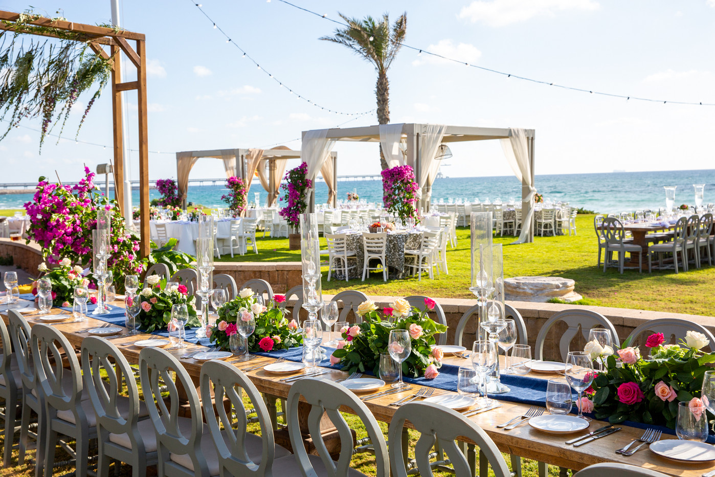 Kochav Hayam est l’endroit parfait pour un événement inoubliable, où la mer azur de Césarée crée une atmosphère féérique à toute heure de la journée. Que ce soit à midi, lorsque le soleil scintille sur les vagues, ou au coucher du soleil, sous un ciel rosé et une brise légère, chaque instant est empreint de magie. Grâce à nos espaces intérieurs, nous accueillons des mariages en toute saison, avec la mer toujours en toile de fond, offrant un décor naturel à couper le souffle. Se marier au bord de l’eau est une expérience unique, où la rencontre entre terre et mer, vagues et rivage, ajoute une dimension poétique à chaque célébration. Le murmure des vagues et le panorama spectaculaire créent une ambiance apaisante et élégante, parfaite pour marquer les grandes étapes de la vie avec style et émotion.